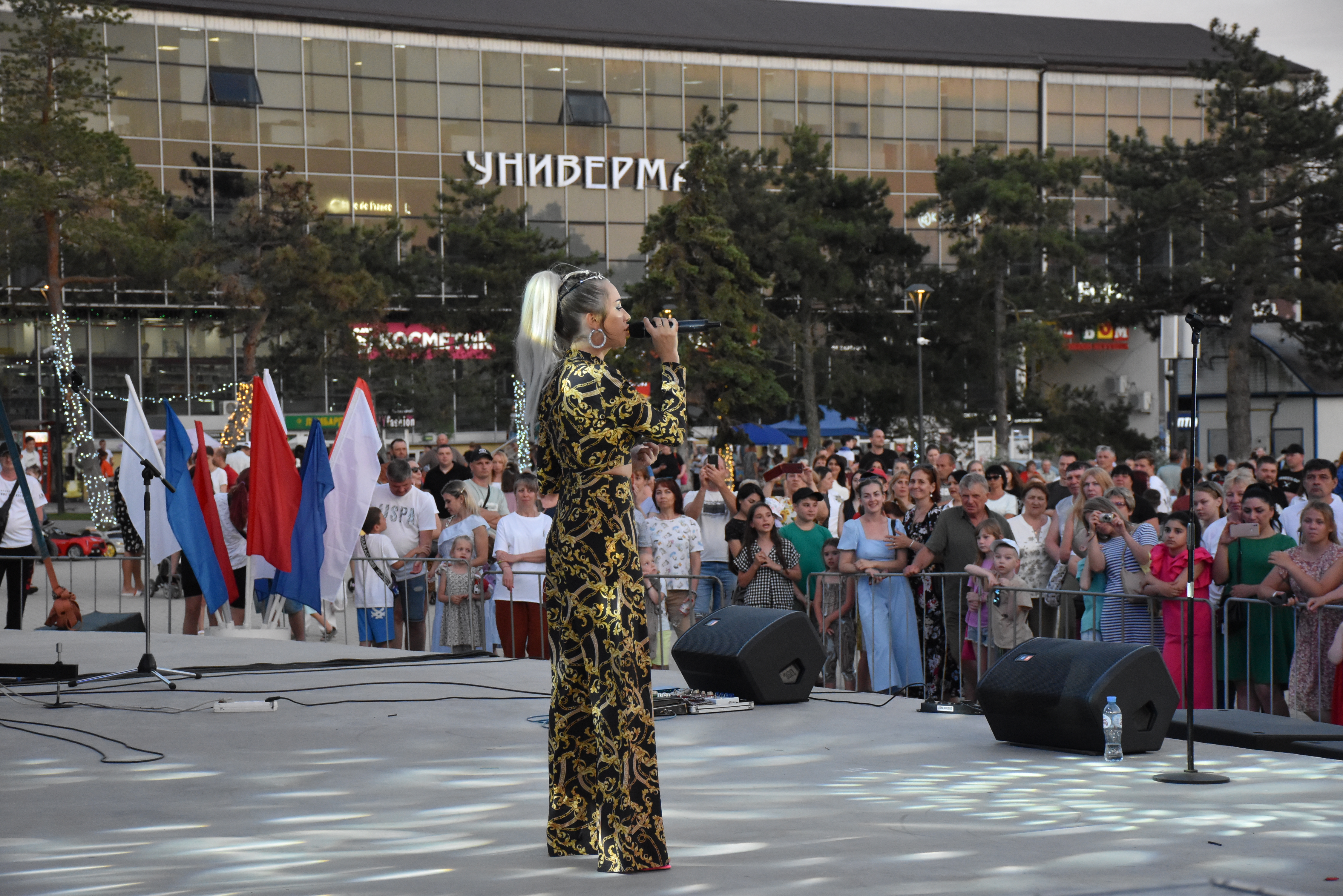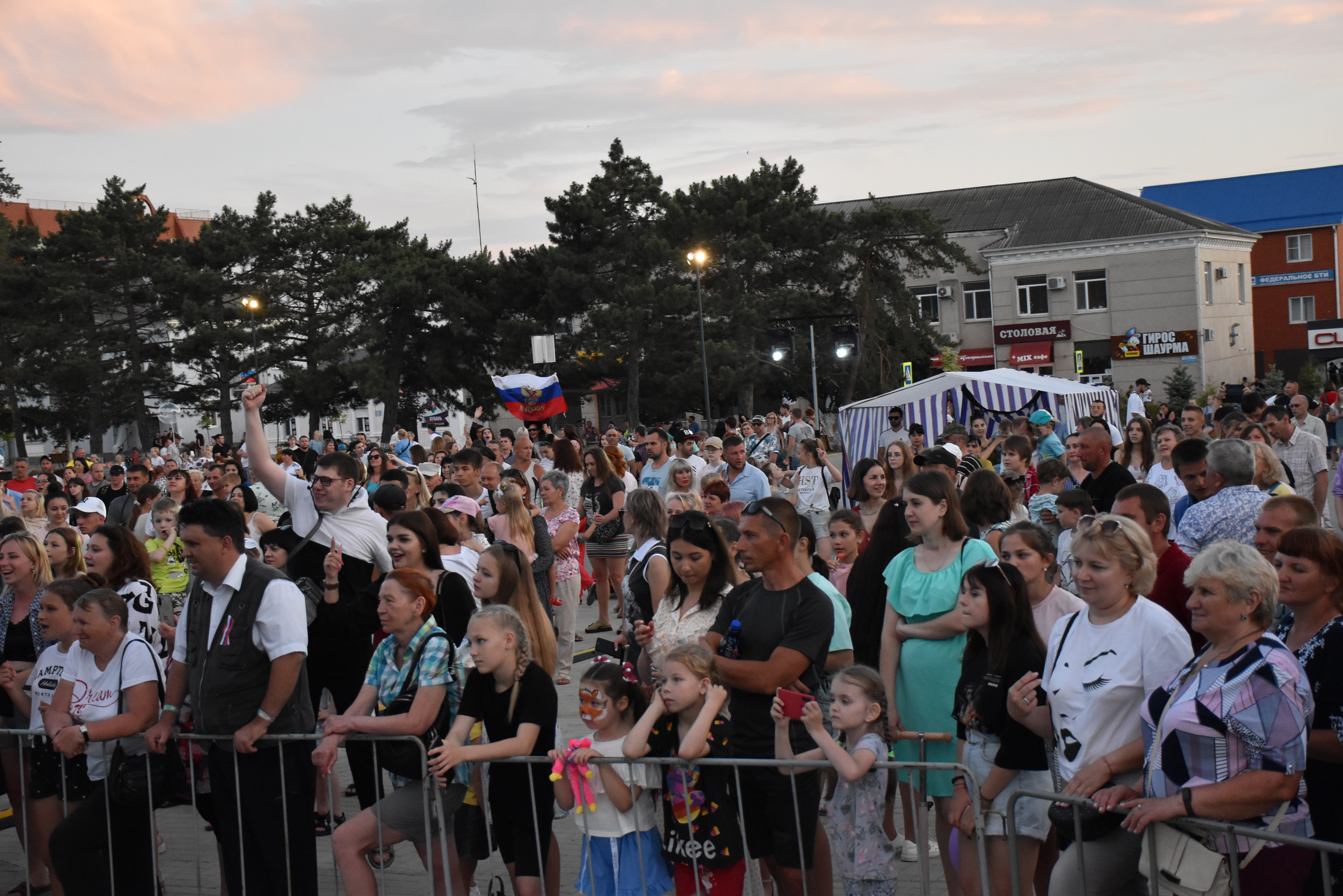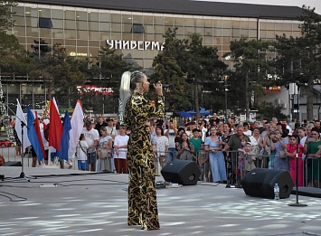 В 18:30 на площади Труда началась торжественная программа «Россия – это мы» и праздничный концерт коллективов самодеятельного творчества.