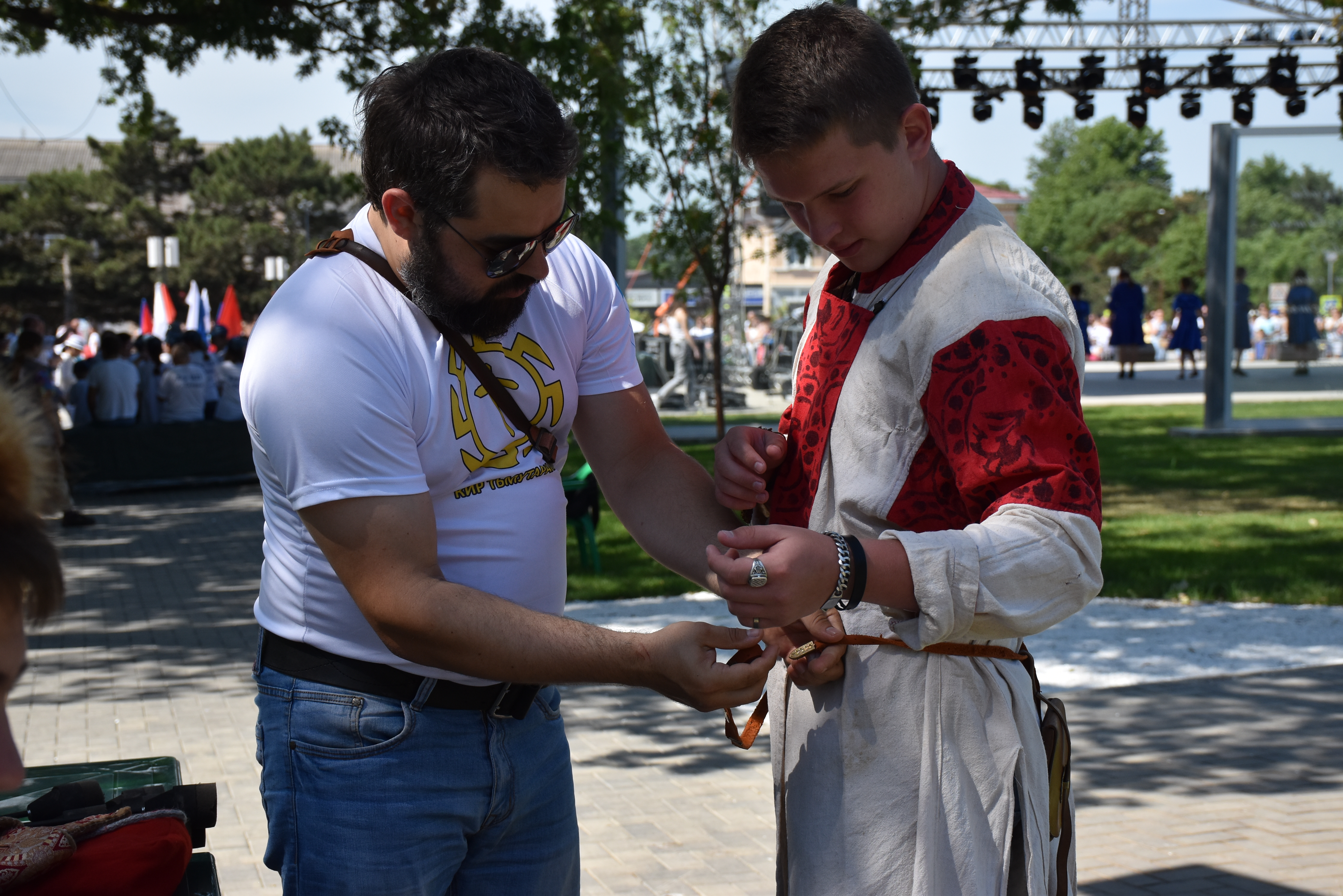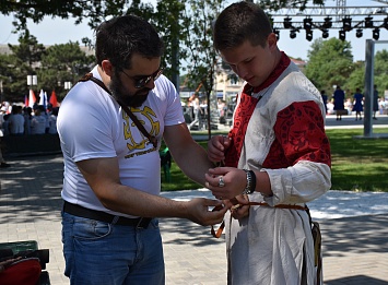 Волонтеры МКУ «Молодежный досуговый центр» наносили аква-гримм в виде триколора, организовали выставку исторических костюмов и доспехов, предоставили возможность принять участие в «тихой охоте на зайца». Любителей настольных игр ждала «Историческая битва».