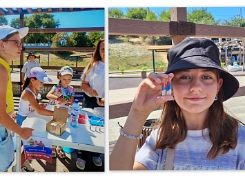 Затем участникам предложили создать российский флаг из цветного песка своими руками. Дети с энтузиазмом приступили к работе, используя прозрачные емкости и послойно насыпали в них песок разных цветов, формируя тем самым символику России.