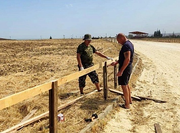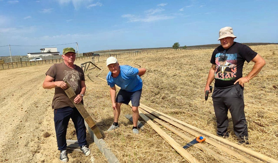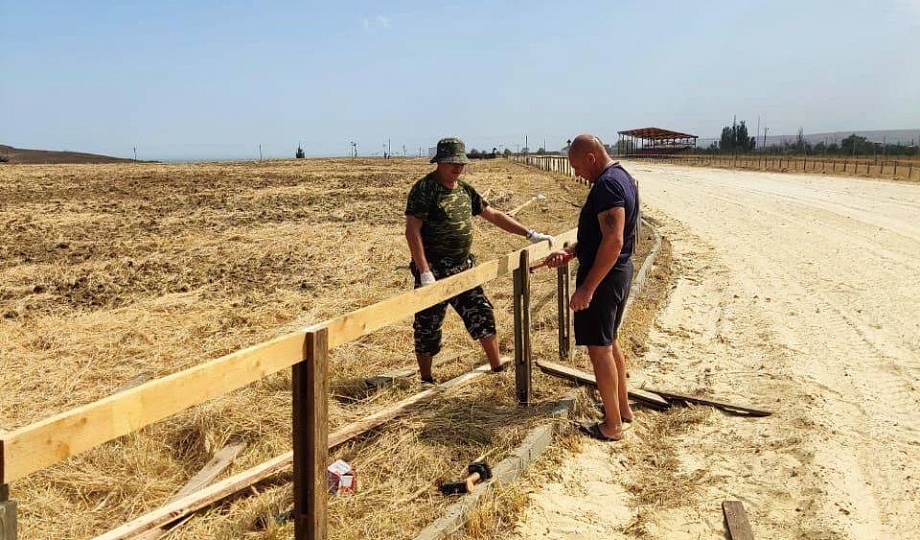 Казаки станицы Тамань и района оказали организаторам конноспортивного представления помощь в обустройстве изгороди - барьера нужного при проведении скачек.
