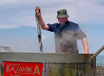 Гвоздем программы стала дегустация настоящей кубанской ухи, на приготовление которой у казаков и казачек Атамани ушло 120 кг картофеля, 70 кг лука и 150 кг рыбы пяти разных видов.