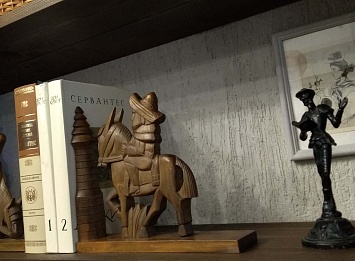 В зале, посвященном персонажам знаменитого романа Мигеля Сервантеса Дон Кихоту и Санчо Пансо , посетители музея смогут узнать о роли ослика в судьбе писателя и его спасении из пиратского плена.
